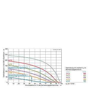 Каждая граничная кривая представляет собой специфичный для преобразователя при соответствующем коэффициенте перегрузки максимальный ток основной нагрузки (граничный ток нагрузки, заданный в % от номинального постоянного тока) в течение минимального времени перегрузки (граничное время перегрузки). Тогда для остаточного времени пика нагрузки допустим максимальный ток, определяемый коэффициентом перегрузки. Если для желаемого коэффициента перегрузки не задана граничная кривая, то следует руководствоваться граничной кривой для следующего коэффициента перегрузки.