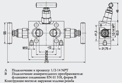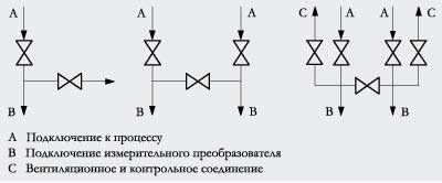 2-х, 3-х и 5-ти шпиндельные вентильные блоки предназначены для измерительных преобразователей абсолютного и дифф. давления. Вентильные блоки используются для блокировки импульсных линий и для проверки нулевой точки измерительного преобразователя давления. 2-х и 5-ти шпиндельный вентильный блок доп. обеспечивает сборос давления со стороны измерительного преобразователя и контроль характеристики измерительного преобразователя давления. |