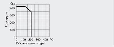 Характеристика Вентильные блоки DN 5, доп. рабочее давление в зависимости от доп. рабочей температуры |