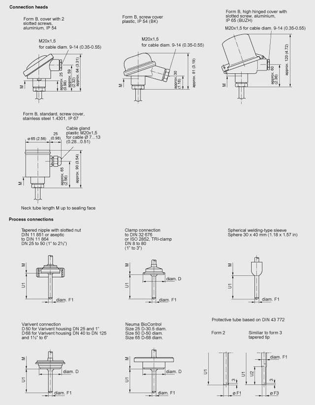 ЧертежСоединительные головки и подключения к процессу, размеры в мм | ||||||||||||||||||||||||||||||||||||||||||||||||||||||