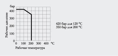 Характеристика Доп. рабочее давление в зависимости от доп. рабочей температуры |