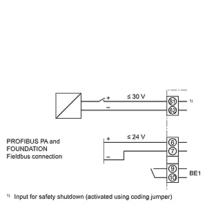 При подсоединении в двухпроводную схему SIPART PS2 получает свою вспомогательную энергию из 4 до 20мА сигнала заданной величины. Также и в режиме с PROFIBUS (SIPART PS2 PA) электрическая подача вспомогательной энергии осуществляется через двухпроводный шинный сигнал. Это же относится и к варианту с Foundation Fieldbus.