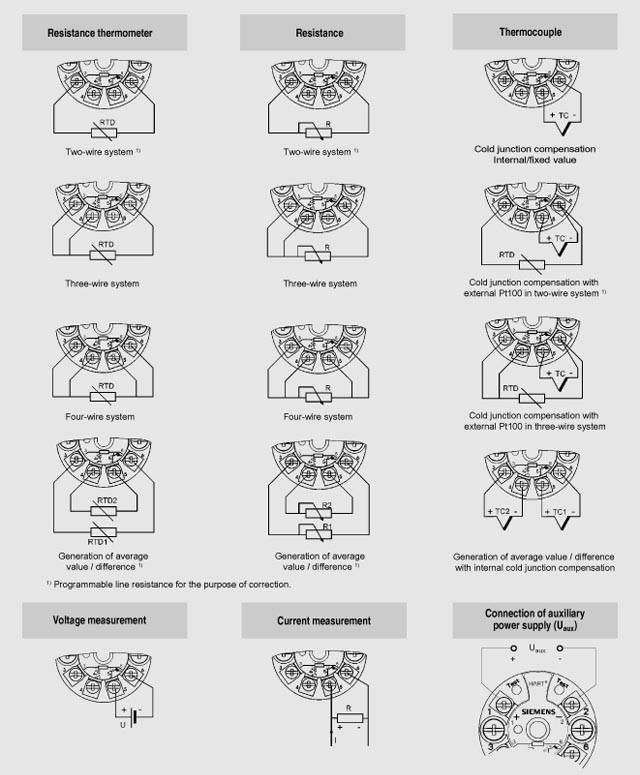 The SITRANS TH200 and SITRANS TH300 transmitters can be used in all industries. Due to their compact size they can be installed in the connection head type B (DIN 43729) or larger. The following sensors/signal sources can be connected over their universal input module: