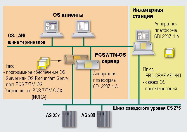 SIMATIC PCS 7 промышленные компьтеры с сетевыми платами Basic Communication Ethernet (BCE) и ОС Windows XP Professional/Server 2003 из секции "Системно-независимые компоненты" SIMATIC PCS 7 каталога ST PCS 7 могут использоваться в качестве базового устройства для PCS 7/TM-OS Одноместной Станции (однопользовательские системы), PCS 7 /TM-OS Сервера и Клиента (многопользовательские системы).
