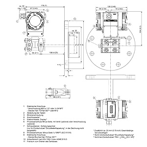 | ¼-18 NPT female thread and flange connection with M10 to DIN 19213 or 7/16-20 UNF mounting thread to EN 61518 | |