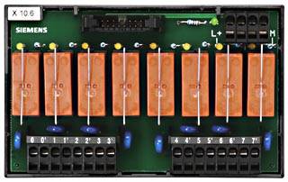 Если необходима гальваническая развязка или адаптация напряжения (напр., преобразование 24 В пост. тока в 230 В перем. тока) между выходными сигналами и сигналами на полевом уровне, используется клеммный блок с реле. На блоке подключения с реле пользователь имеет 8 клемм, выполненных по 2-проводной технологии, для полевых сигналов. Питающее напряжение может подаваться на модуль с блока подключения или от фронтального соединителя. Реле могут быть заменены оптронами. Здесь должны быть приняты во внимание электрические величины. Эти блоки подключения с реле снабжены светодиодами для оптической сигнализации.