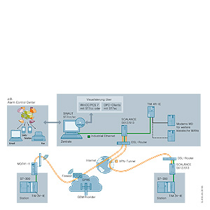 - Мониторинг и управление беспроводными соединениями с удаленными станциями SINAUT ST7 с низкими инвестиционными и оперативными затратами.