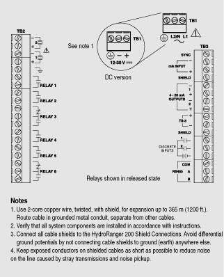 Схема подключения Соединения HydroRanger 200 |