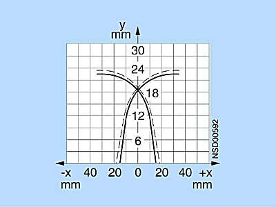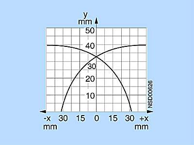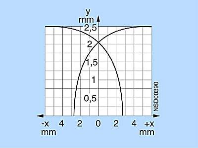 Момент затяжкиБесконтактные датчики BERO могут быть механически повреждены при слишком сильном затягивании гаек. Максимально допустимые моменты затяжки указаны в технических данных. Рабочее расстояние срабатывания SaСмотри расстояния срабатывания Дистанция срабатывания ΔxРасстояние между воздействующим элементом осью Z датчика BERO в точке срабатывания A. ВыходБесконтактные датчики BERO выпускаются с различными схемами выходов. 2 провода, DC или AC/DC, нагрузка последовательна с BERO. 3 провода, DC, pnp, нагрузка между A и L - 3 провода, DC, npn, нагрузка между A и L+ 4 провода, антивалентный, DC, нагрузка между A1, A2 и L- Выходное сопротивлениеДля того, чтобы выходное напряжение соответствовало коммутационному состоянию и без внешней нагрузки, бесконтактные датчики BERO имеют встроенное выходное сопротивление. При работе с высокими частотами коммутации должно быть подключено нагрузочное сопротивление (для уменьшения электрической постоянной времени). Аксиальное приближениеАксиальное приближение - это приближение воздействующего элемента вдоль опорной оси Z активной поверхности бесконтактного датчика. Выходной токДатчики рассчитаны на определенный максимальный выходной ток. При превышении, даже кратковременном, этого значения включается защита от перегрузки. Лампы накаливания, конденсаторы и другие большие емкостные нагрузки, например, длинные провода, оказывают влияние, аналогичное перегрузки. Задержка готовности tvЗависящее от датчика время, которое проходит до того, как датчик BERO приходит в готовность к работе после подачи рабочего напряжения (см. также ложный импульс на включение). Рабочее напряжениеРабочее напряжение указывается с остаточной пульсацией 10%. Рабочая температураРабочая температура не должна быть выше указанной. Бесконтактный датчик может быть поврежден, и его рабочие характеристики становятся неопределенными. Опорная ось zОпорная ось - ось, проходящая перпендикулярно центру активной поверхности бесконтактного датчика BERO. МонтажБесконтактные датчики для встраивания заподлицо Бесконтактные датчики для встраивания заподлицо могут встраиваться во все металлы. Для правильного функционирования должно быть обеспечено необходимое свободное пространство. Бесконтактные датчики для встраивания незаподлицо При установке бесконтактных датчиков для встраивания не заподлицо в проводящие материалы (металлы) необходимо соблюдать минимальные расстояния до материала. Это относится к встраиванию "условно заподлицо". Допустимо встраивание заподлицо в непроводящие материалы.