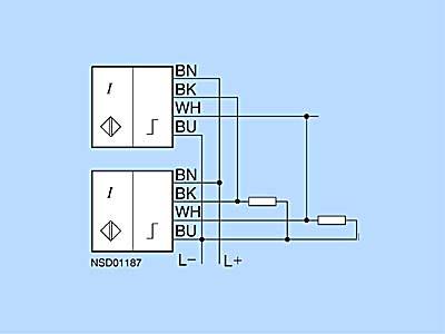 Схема подключения 1 Схема подключения 2 Схема подключения 3 Схема подключения 4 Схема подключения 5 Схема подключения 6 Схема подключения 7 Схема подключения 8 Схема подключения 9 Схема подключения 10 Схема подключения 11 Схема подключения 12 Схема подключения 13 Схема подключения 14 Схема подключения 15 Схема подключения 16 Схема подключения 17 Схема подключения 18 Схема подключения 19 Схема подключения 20 Схема подключения 21 Схема подключения 22 Схема подключения 23 Схема подключения 24 Схема подключения 25 Схема подключения 26 Схема подключения 27 Схема подключения 28 Схема подключения 29 Схема подключения 30 Обозначение цветов соединительных кабелей в соответствии с IEC 60 757: BK = Черный BU = Голубой BN = Коричневый WH = Белый Примеры подключенийПараллельное соединение Версия DC2-проводные BERO, для ПЛК Не возможно, т.к. суммарный ток в выключенном состоянии всех BERO должен быть меньше удерживающего тока нагрузки 3-проводные BERO, pnp 3-проводные BERO, npn 4-проводные BERO, pnp Версия AC/DCСуммарный ток всех BERO должен быть меньше удерживающего тока нагрузки Примеры подключенияПоследовательное подключение 1) Версия DC2-проводные BERO, для ПЛК Не возможно, т.к. n ≤ Ub 15 V / 8 V Ub PLC: 24 V 3-проводные BERO, pnp n ≤ Ub Umin / 2.5 V + 1 Uc = Ub (n * 2.5 V) 3-проводные BERO, npn n ≤ Ub Umin / 2.5 V + 1 Uc = Ub (n * 2.5 V) 4-проводные BERO, pnp Версия AC/DCn ≤ Ub / 20 V Uc = Ub (n * 8 V) Примеры подключенияПаралелльное подключение с 1 контактом (NO или NC) Версия DC2-проводные BERO, для ПЛК 3-проводные BERO, pnp 3-проводные BERO, npn 4-проводные BERO, pnp Версия AC/DCПри питании от постоянного напряжения диод должен быть подключен параллельно первичной индуктивной нагрузке. Примеры подключенияПоследовательное подключение с 1 контактом (NO или NC) 1) Версия DC2-проводные BERO, для ПЛК 3-проводные BERO, pnp Другие подключения не возможны. 3-проводные BERO, npn 4-проводные BERO, pnp Версия AC/DCUb = рабочее напряжение Uc = минимальное рабочее напряжение при нагрузке n = кол-во BERO Umin = минимально разрешенное рабочее напряжение 1) При определении времени срабатывания необходимо иметь в виду также время задержки power-up. Цвета соединительных кабелей в соответствии с IEC 60 757: BK = Черный BN = Коричневый BU = Голубой WH = Белый | |||||||||||||||||||||||||||||||||||||||||||||||||||||||||||||||||||||||||||||||||||||||||||||||||||||||||||||||||||||||||||||||||||||||||||||||||||||||||||||||||||||||||||||||||||||||||||||||||||||||||||||||||||||||||||||||||||||||||||||||||||||||||||||||||||||||||||||||||||||||||||||||||||||||||||||||||||||||||||||||||||||||||||||||||||||||||||||||||||||||||||||||||||||||||||||||||||||||||||||||||||||||||||||||||||||||||||||||||||||||||||||||||||||||||||||||||||||||||||||||||||||||||||||||||||||||||||||||||||||||||||||||||||||||||||||||||||||||||||||||||||||||||||||||||||||||||||||||||||||||||||||||||||||||||||||||||||||||||||||||||||||||||||||||||||||||||||||||||||||||||||||||||||||||||||||||||||||||||||||||||||||||||||||||||||||||||||||||||||||||||||||||||||||||||||||||||||||||||||||||||||||||||||||||||||||||||||||||||||||||||||||||||||||||||||||||||||||||||||||||||||||||||||||||||||||||||||||||||||||||||||||||||||||||||||||||||||||||||||||||||||||||||||||||||||||||||||||||||||||||
