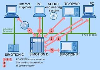 Функции Следующие типы коммуникации доступны для SIMOTION через Industrial Ethernet: PG/OP коммуникации (1, 2, 5) - Инжиниринг и диагностика с помощью SIMOTION SCOUT (1)