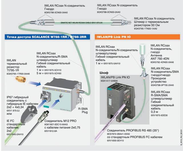 • Широкополосный кабель, дополняющий спектр IWLAN компонентов SIMATIC NET, отвечающих требованиям стандартов IEEE 802.11b/g и IEEE  802.11и работающих в диапазонах частот 2.4 ГГц и 5 ГГц