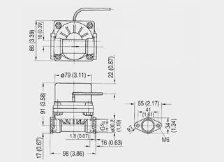 Чертеж Кольцевой счетчик с электронным импульсным датчиком и суммирующим механизмом, размеры в мм (дюймах) |