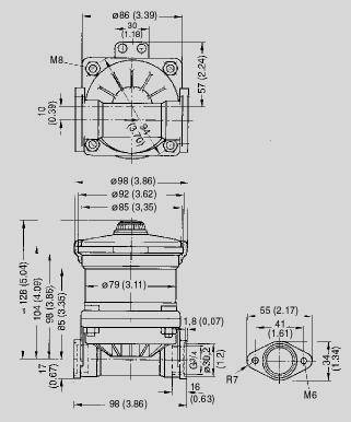 Чертеж Pistol-grip meter 20/08 with double-pointer dial, dimensions in mm (inch) |