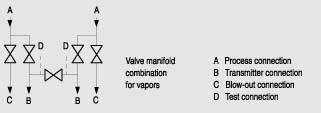 Комбинация вентильных блоков DN 8 предназначена для измерительных преобразователей дифф. давления. Комбинация используются для блокировки и продувки импульсных линий, а также для проверки нулевой точки измерительного преобразователя давления. У конструкций с контрольным соединением возможно подключение контрольного прибора для проверки характеристики измерительного преобразователя давления. | |||||||||||||||||||||||||||||||||||||||||||||
