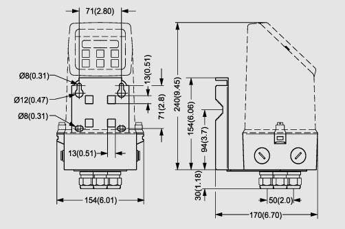 ЧертежИзмерительный преобразователь IP67/NEMA 4X/6, компактная версия из полиамида Измерительный преобразователь , интегрированный монтаж Измерительный преобразователь , монтаж на стену |