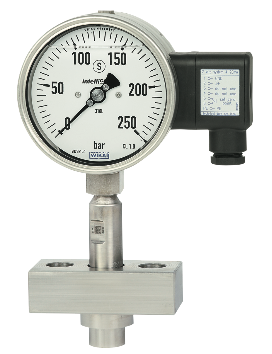 Пример: Мембранный разделитель модели 990.30 с установленным манометром и фланцевым держателем