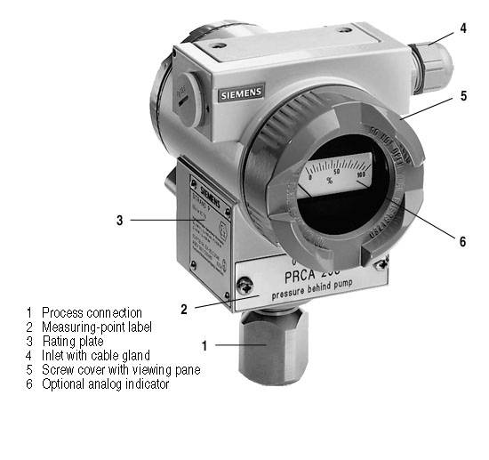 ДизайнSITRANS P измерительный преобразователь давления, серия МК II, вид прибора спереди Прибор, в зависимости от требований заказа, состоит из различных компонентов. Возможные варианты исполнения см. указания по заказу. Описанные ниже компоненты идентичны для всех приборов. Сбоку на корпусе среди прочего находится типовая табличка (3, рис. „Вид прибора спереди“) с заказным номером. Через указанный номер и данные в указаниях по заказу можно определить опционные детали конструкции и возможные диапазоны измерения (физические свойства встроенного сенсорного элемента). Напротив находится табличка с допусками. Корпус состоит из алюминиевого литья под давлением и точного литья из нерж. стали. На передней и задней стороне корпуса находится по одной съемной круглой крышке (5). Как опция измерительный преобразователь давления может быть оборудован аналоговым индикатором (6). Сбоку, по выбору слева или справа, находится подвод (4) для электрического подключения. Соответствующее не задействованное отверстие на противоположной стороне закрыто заглушкой. На задней стороне корпуса находится подключение заземляющего кабеля. После снятия задней крышки открывается доступ к электрическим соединениям для питания и экрана. В нижней части корпуса находится изм. ячейка с подключением к процессу (1). Изм. ячейка зафиксирована стопорным винтом от прокручивания. | ||||||||||||||||||||||||||||||||||||||||||||||||||||||||||||||||||||||||||||||||||||||||||||||||||||||||||||||||