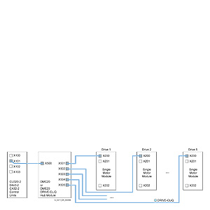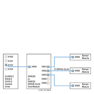 Модуль-концентратор DRIVE-CLiQ DMC20 используется для звездообразного распределения линии DRIVE-CLiQ. Два Модуля-концентратора DRIVE-CLiQ DMC20 подключаются последовательно (каскад)