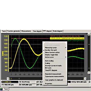 Временные характеристики входных и выходных переменных, связанных с объектами приводов, могут быть измерены с помощью интегрированной функции отслеживания, и отображены с помощью средства STARTER. Отслеживать можно до 4 сигналов одновременно. Запись может быть инициирована в качестве функции свободно выбираемых граничных условий, например, значение входной или выходной переменной.