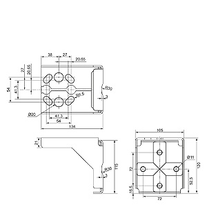Mounting bracket for SITRANS P gage and absolute pressure transmitter, DS III seriesMaterial of mounting bracket: Sheet-steel Mat. No. 1.0330, chrome-plated, or stainless steel Mat. No. 1.4301 (304)