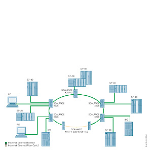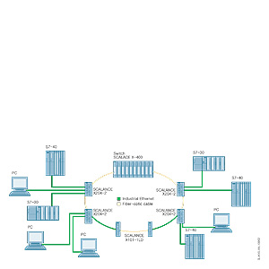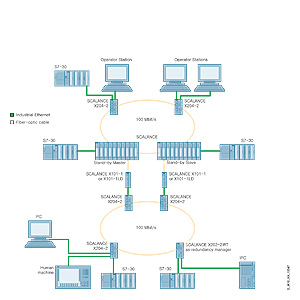 Одиночные удаленные сетевые терминалы могут подключаться к конвертору SCALANCE X-100 оптическим кабелем. Конверторы могут использоваться в резервированных кольцевых структурах, а также для организации соединений управления резервированием.