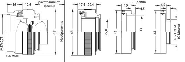 Если опорные размеры в данной камере спроектированы для линз CS-Mount, как для VS 100 и VS 720, то для настройки линзы C-Mount может быть использовано 5-миллиметровое промежуточное кольцо.