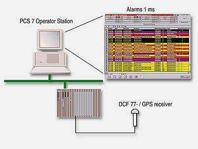 Функциональный блок PCS 7 SOE для SIMATIC PCS 7 позволеят записывать события с разрешением 1 мс. При помощи данного блока происходит синхронная запись событий по времени и оператор видит сообщения в правильной последовательности. Если происходит разрыв связи с операторской станции, то PCS 7 SOE может записать в буфер 2000 сообщений. Также есть возможность забуфферизовать 1927 сообщения в дополнительный блок данных. PCS 7 SOE функциональный блок требует входной модуль SICAM DI32 для записи сигнала. Также необходим внешний приемник DCF 77/GPS и модуль синхронизации SICAM MCP. К центральной и стойке расширения станции 41х может быть подключено до 10 модулей SICAM DI32. PCS 7 SOE конфигурируется при помощи CFC редактора в SIMATIC PCS 7. |