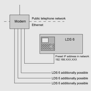 ИнтеграцияCommunication LDS 6 is capable to transmit and receive data via Ethernet connection by using the software LDScom. This installation and service tool is capable to check and adjust remotely instrument status and calibration parameters. If desired, almost a full system check can be done remotely. In case of service, information can be addressed via modem to Siemens service personnel, who take care of appropriate measures remotely. This remote control capability is established by using a standard LAN modem. External connection of LDS 6 via modem to establish remote maintenance capabilities |