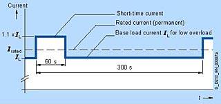 Базовый ток нагрузки IL принимается из расчёта перегрузки 150% на 60 с или 160% на 10 с с периодом цикла 300 с. Большая перегрузка | ||||||||||||||||||||||||||||||||||||||||||||||||||||||||||||||||||||||||||||||||||||||||||||||||||||||