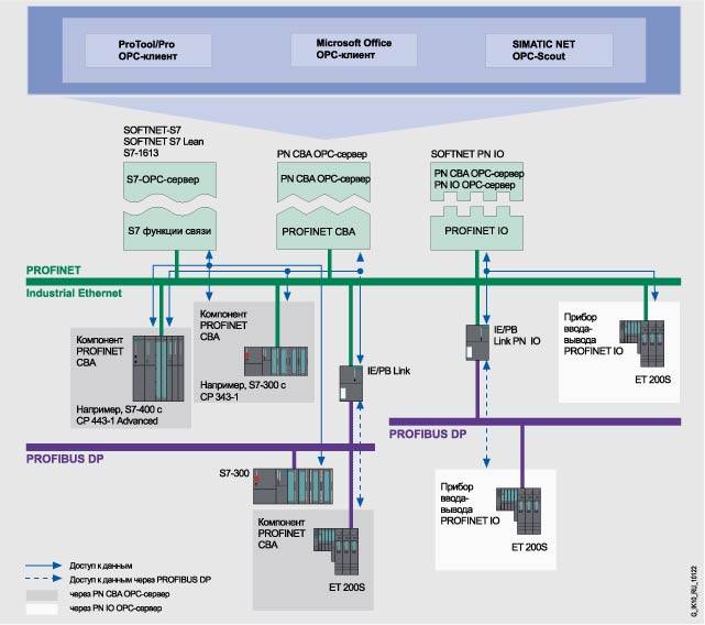 • Обеспечить вертикальную интеграцию. Использование IT-технологий и PN OPC сервера для получения доступа через Industrial Ethernet к данным PROFInet компонентов.