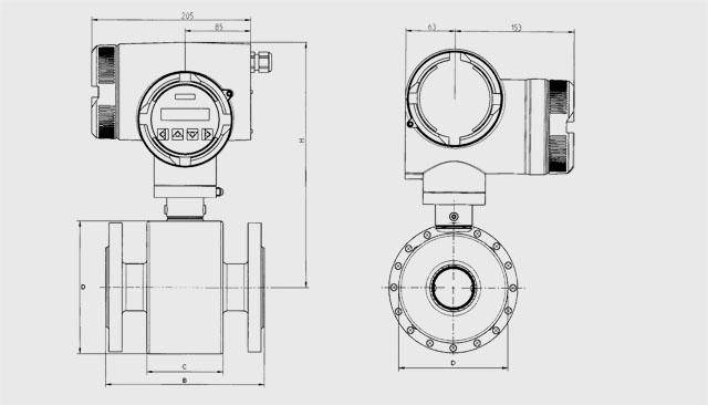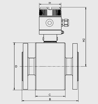 Чертеж SITRANS F M Измерительный датчик 911/E, раздельная конструкция, размеры в мм (дюймах) SITRANS F M Измерительный датчик 911/E, компактная конструкция, размеры в мм (дюймах) Ном. диаметр | DN15 | DN20 | DN25 | DN32 | DN40 | DN50 | DN65 | DN80 | DN100 | DN125 | DN150 | DN200 | DN250 | DN300 | DN350 | DN400 | DN500 | DN600 | | ½“ | ¾“ | 1“ | 1 ¼“ | 1 ½“ | 2“ | 2 ½“ | 3“ | 4“ | 5“ | 6“ | 8“ | 10“ | 12“ | 14“ | 16“ | 20“ | 24“ | | Монтажная длина BI) | Версия с эбонитом Версия с мягкой резиной /Neopren Футеровка из PTFE без защитных дисков | 270 (10.63) | 280 (11.02) | 330 (12.99) | 340 (13.39) | 370 (14.57) | 410 (16.14) | 470 (18.50) | 500 (19.68) | 550 (21.65) | 600 (23.62) | 650 (25.59) | 780 (30.71) | Футеровка из PTFE с защитными дисками | 276 (10.86) | 286 (11.26) | 336 (13.23) | 346 (13.62) | 376 (14.80) | 416 (16.38) | 476 (18.74) | 510 (20.08) | 560 (22.05) | 610 (24.02) | 660 (25.98) | 790 (31.10) | Версия Novolak | - | 275 (10.83) | 325 (12.79) | 335 (13.19) | 333 (13.11) | 363 (14.29) | 403 (15.87) | 461 (18.15) | 489 (19.25) | 543 (21.38) | 593 (23.35) | 643 (25.32) | 773 (30.43) | | Размеры преобразователя расхода | Ширина корпуса C | 170 (6.69) | 240 (9.45) | 306 (12.05) | 360 (14.17) | 412 (16.22) | 552 (21.73) | Высота H для компактной версии | 281 (11.06) | 285 (11.22) | 291 (11.46) | 298 (11.73) | 314 (12.36) | 326 (12.83) | 345 (13.58) | 371 (14.61) | 408 (16.06) | 441 (17.36) | 553 (21.77) | 578 (22.76) | 633 (24.92) | 688 (27.09) | Высота H2 для раздельной версии | 175 (6.89) | 180 (7.08) | 187.5 (7.38) | 195 (7.68) | 215 (8.46) | 230 (9.06) | 252.5 (9.94) | 285 (11.22) | 330 (12.99) | 370 (14.57) | 347 (13.66) | 372 (14.65) | 424 (16.69) | 477 (18.78) | Диаметр корпуса D | 135 (5.315) | 169 (6.654) | 184 (7.244) | 249 (9.803) | 274 (10.79) | 298 (11.73) | 324 (12.76) | 394 (15.51) | 442 (17.40) | 492 (19.37) | 469 (18.46) | 536 (21.10) | 631 (24.84) | 746 (29.37) | Вес версии PN 10 в кг (MWP 145 psi версия в lbs) | 8.0 (17.6) | 8.5 (18.7) | 11.0 (24.3) | 11.5 (25.4) | 25.0 (55.1) | 26 (57.3) | 28 (61.7) | 34 (75.0) | 38 (83.8) | 68 (149.9) | 80 (176.4) | 90 (198.4) | 110 | 150 | 210 (463) | 370 (860) | ²) Допуск для монтажной длины: B + 0,0 мм (0.00 дюймов) /- 4,0 мм (-0.157 дюймов). С защитными кольцами или дисками при >DN 25+6,0, > DN 200 + 10,0 мм (> 1" + 0.236 дюймов. > 8" + 0.394 дюймов) |