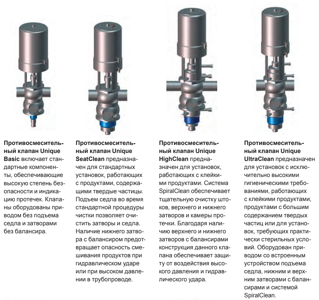 Концепция создания противосмесительных клапанов Unique является идеальным решением для применения в любых технологических процессах с высокими требованиями к безопасности и гибкости, а также при необходимости обеспечить минимальные эксплуатационные затраты
