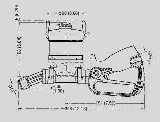 ЧертежPistol-grip meter with inspection glass, dimensions in mm (inch) | ||||||||||||||||||||||||||||||||||||||||||||||