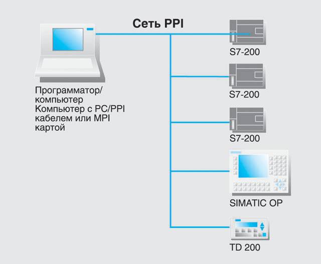 - До 31 программируемого контроллера. Одновременно с этим к сети может быть подключен программатор, компьютер, текстовый дисплей TD 200 или панель оператора. Непосредственный обмен данными между двумя контроллерами S7-200 осуществляется с помощью инструкций NETR и NETW.