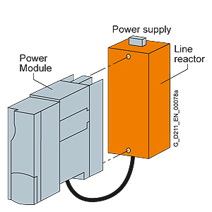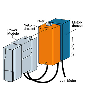 Сетевые дроссели имеют клеммы со стороны сети и кабельс разъемами на стороне силового модуля PM340. Утипоразмеров FSA до FSC сетевые клеммы всмонтированном состоянии находятся сверху, утипоразмеров FSD и FSE снизу.