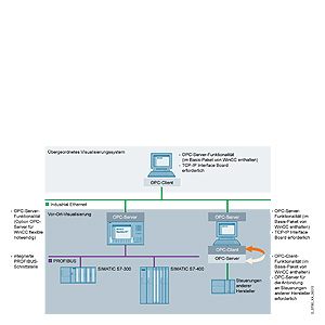 1) Замечание:При использовании клиентских каналов OPC можно, например, подключиться к SNMP-OPC серверу, который может предоставлять данные о состоянии любых сетевых компонентов (например, коммутаторов) которые поддерживают протокол SNMP. Дальнейшую информацию можно найти в каталоге IK PI