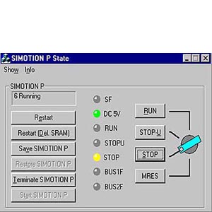 Программное обеспечение ядра SIMOTION P не имеет естественно никаких кнопок или переключателей для изменения ее рабочих состояний (ПУСК / ОСТАНОВ). Эту задачу решает монитор программного обеспечения (смотри рис. программное обеспечение - монитор), который обслуживается при помощи клавиатуры или мыши.