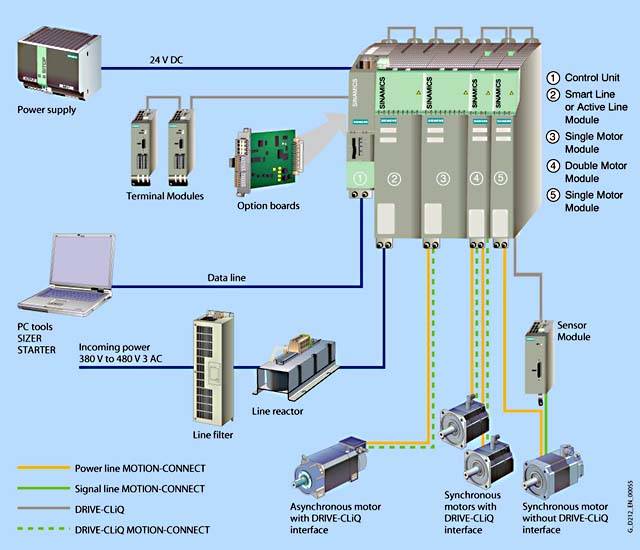 Для выполнения необходимых функций SINAMICS S120 оснащен:
