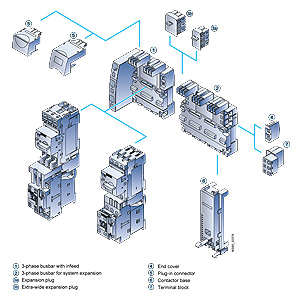 Основной элемент системы - 3-ф. базовый модуль с боковым 3-ф. модулем ввода питания. Модуль ввода питания с пружинными вводными клеммами. Максимальное сечение подключаемых проводников с кабельными наконечниками - 25 mm2.