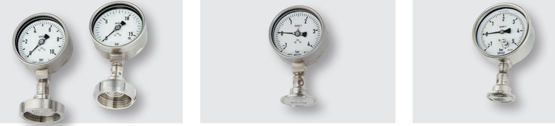З манометром згідно з стандартом EN 837-1, з молочною різьбою або з різьбою SMS