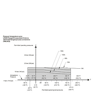 SITRANS LR250 с фланцевым соединением и антенной в корпусе, график отношения давление/температура