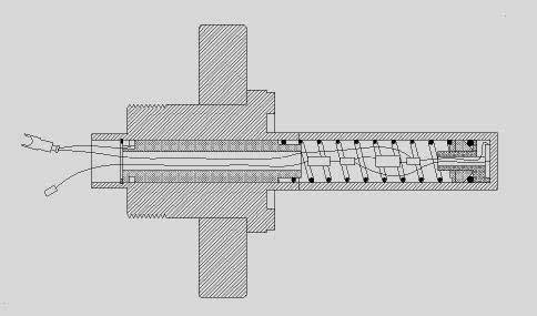 Transducer element flange version Terminal box, transducer element and insert are identical in both versions. The ultrasonic pulse is produced by sound energy being transmitted, via the window, to/from the liquid. The sound source is a piezoelelectric crystal in the insert. The insert, consisting of a spring and piezo crystal, can be removed from the transducer element during operation. No draining is necessary as the transducer element remains in the pipe. When exchanging the transducer insert, everything must be kept extremely clean to avoid dirt between crystal and window.