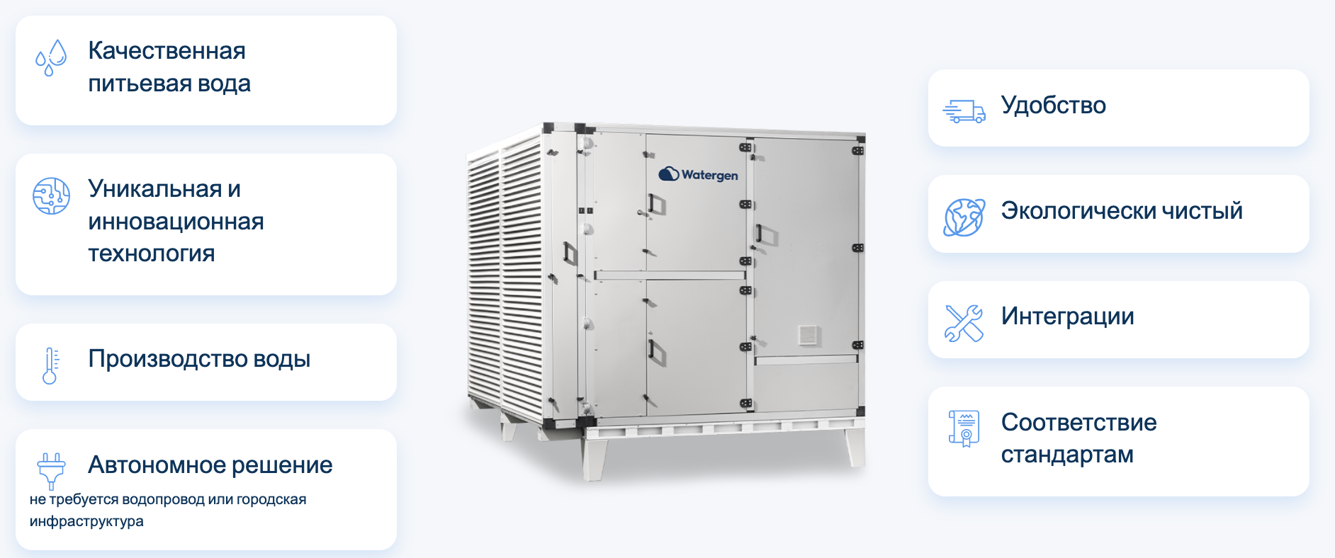 Watergen обеспечивает идеальное решение для краткосрочного или долгосрочного стабильного обеспечания водой из воздуха везде, где это необходимо