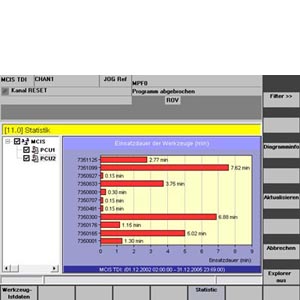 В модуле "Statistics" зарегистрированные события станка могут отображаться в виде диаграмм или таблиц. Из иерархии установки в древовидной структуре можно выбрать для отображения необходимые станки. Фильтрующая маска позволяет выбрать специфический тип диаграммы, используемые специальные фильтры событий и определяемую длительность контроля.