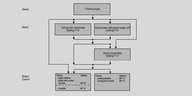 ИнтеграцияКомбинация приборов для измерения и регулирования температуры, с термопарой в качестве чувствительного элементаПримеры монтажа с предложениями по подходящим сенсорам и защитным трубкам