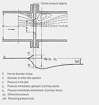 ДизайнДиаграмма с кольцевыми камерами“Диафрагма с кольцевыми камерами” состоит из двух арматурных колец, которые через кольцевую камеру и кольцевой зазор соединены с внутренностью торубы. От арматурных колец заборные штуцеры направляют перепад давления через запорные приспособления и трубопровод перепада давления на измерительный преобразователь дифф. давления. Между араматурными кольцами вложен измерительный диск с уплотнением. Диафрагма с отдельными отверстиями“Диафрагма с отдельными отверстиями” является цельной. Внутренность трубы через два отдельных отверстия соединена с заборными штуцерами. Диафрагма монтируется в трубопровод между двумя фланцами. | |||||||||||||||||||||||||||||||||||||||||||||||||||||||