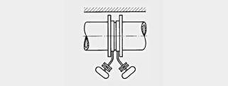 Горизонтальная линий от стены с дроссельным прибром и комбинацией вентилей; у диафрагмы с кольцевой камерой или цельной диафрагмы специальной монтажной длины 65мм. У горизонтальных паропроводов прямые штуцеры располагаются друг против друга или, если трубопроводо проходит близко к стене, выгнутые штуцеры на одной стороне.