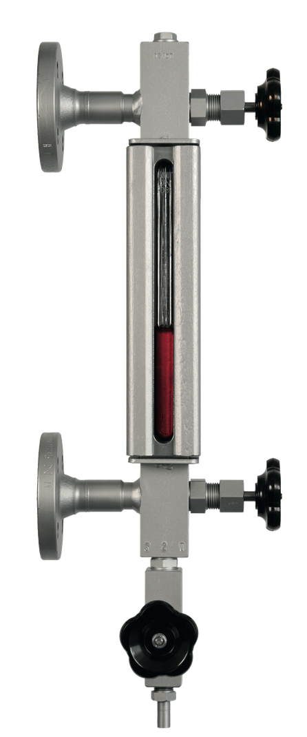 Если смотреть с обратной стороны, падающий свет проходит через оба смотровых стекла со средой между ними. Уровень заполнения будет отображаться либо напрямую из-за природы самой жидкости, либо в виде линии (мениска).