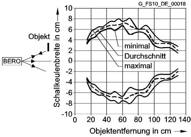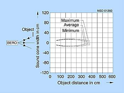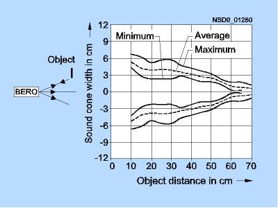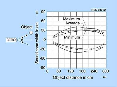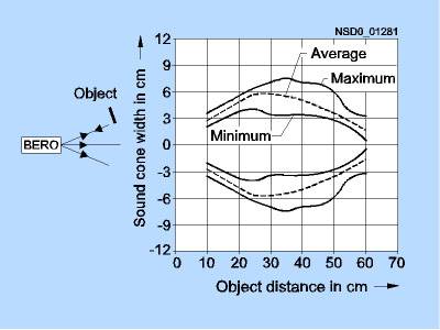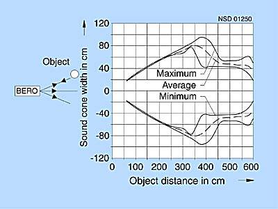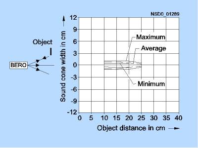 Конструкция датчика такова, что ультразвук излучается коническим пучком. Отражающие объекты фиксируются только в пределах этого ультразвукового конуса. В слепой зоне, лежащей между поверхностью датчика и зоной дальности действия, по физическим причинам эхо-сигналы приниматься и обрабатываться не могут.